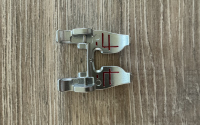 Für den ebenso hier eingestellten Obertransportfuss DF1 biete ich hier den separat erhältlichen offenen Dual-Fuß an.