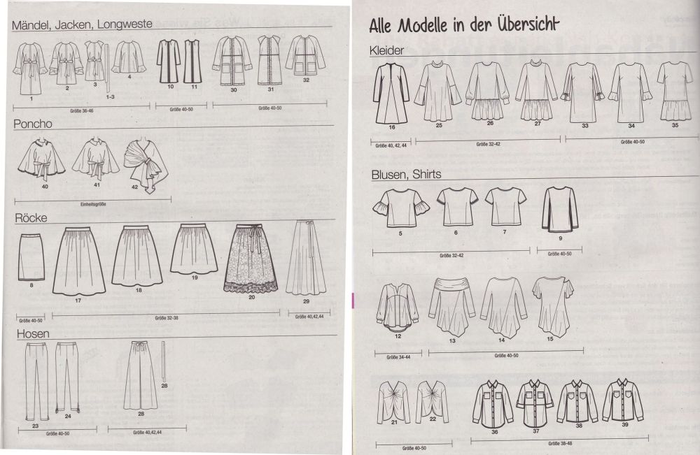Alle Modelle in der Übersicht zeigt mein Scan. Auch Mändel dürf(t)en wir nähen. Ihr seht, die Zusammenstellung bringt wie immer eine Anzahl von Basicschnittmustern. Das die Nahtzugabe enthalten ist, gehört zu meinen Standardhinweisen.