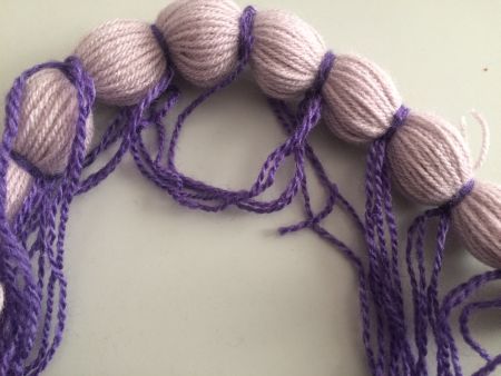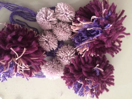 Da meine "Lila-Phase" tatsächlich ganz der Vergangenheit angehört, habe ich aus der noch vorhandenen Wolle ein paar Pompons ausprobiert.