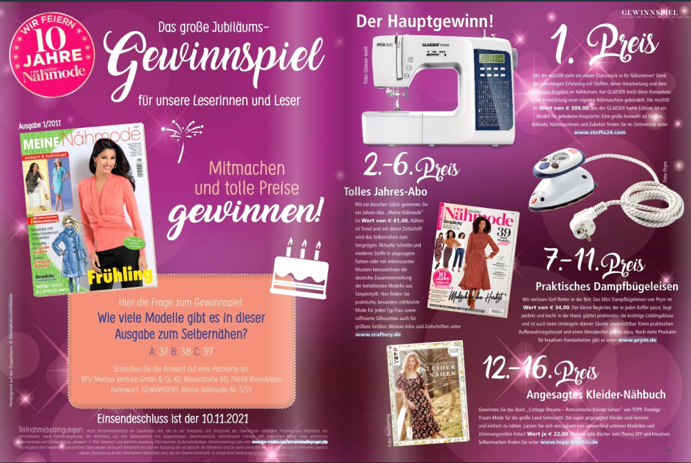 10 Jahre "Meine Nähmode Simplicity" - das Jubiläumsheft mit Gewinnspiel