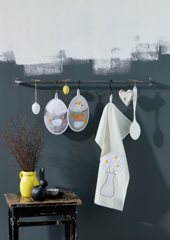 "Ei, ei, ei … Lustige Ostermotive für Tischsets, Geschirrtücher und eierförmige Topfhandschuhe"