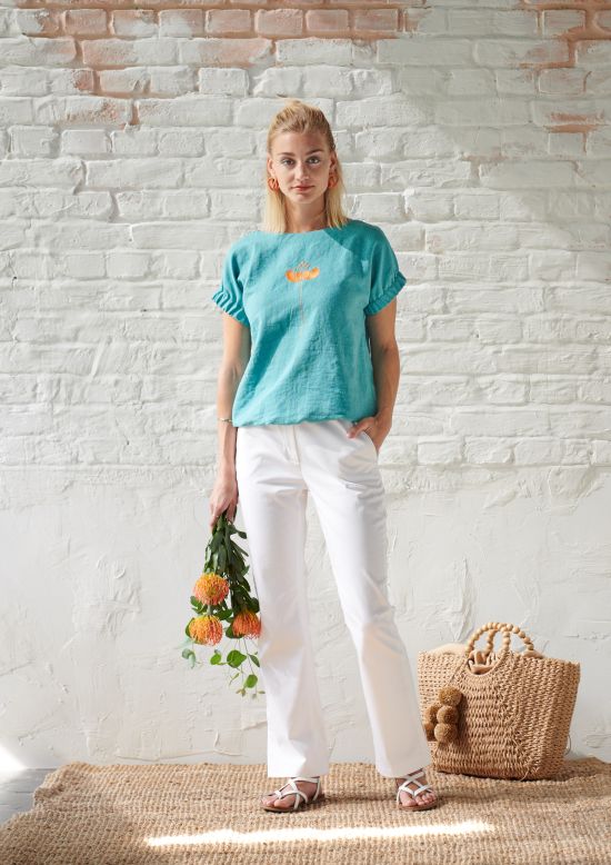 "Erfrischt in die Saison: Besticktes Leinenshirt und Hose"