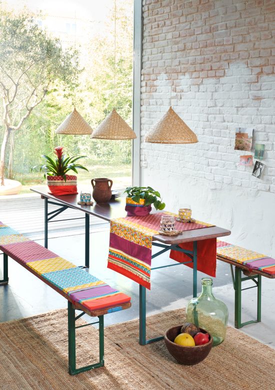 "Farbenfroh ins Frühjahr: Bunte Bankhussen und Tischläufer im Patchworklook"