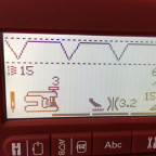 Auswahl des nötigen Fußes für die Verwendung von Zierstichen. Dazu kann man die Füße von unten gut erkennbar erklären. Wenn ein Satinstich genäht wird, werden mitunter je nach Musterwahl dichte Stiche auf den Stoff gelegt. Um den Transport durch die Stiche auf der Oberfläche nicht zu behindern, wird der Fuß mit der Aussparung gewählt, welcher nur links und rechts den Transporteur fest berührt. Kinder erkennen diese Brückenfunktion sehr gut. Sie können nun aus den Zierstichen (es gehen auch Nutzstiche) verschiedene Stiche auswählen.