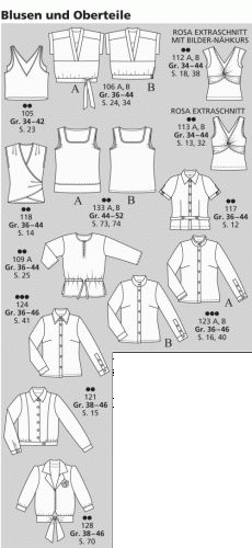 Ich habe sie - entsprechend des Nähjournales nach der Art des Kleidungsstückes anzubieten. Fangen wir mit Hosen, Röcken und Blusen an: