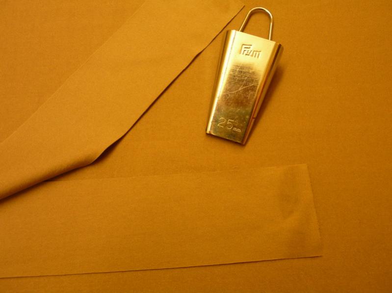 Paspel mit dem Schrägbandformer in Form bügeln. Dann ist das anschließende Nähen leichter.