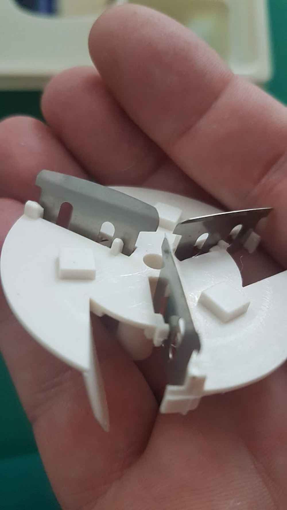 Das Gewicht passt, die Lautstärke ist eher leiser als bei unseren Batterieteilen; erfreulich, dass ein Ersatzmesser beiliegt: