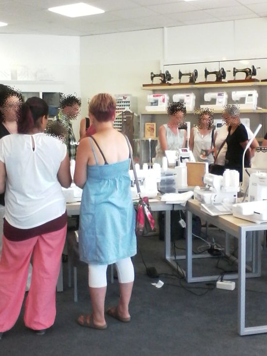 Viel Platz zum schauen, für den Nähkurs, die Angebote aus dem Stoff, - Kurzwaren-, Schnittmuster-, Maschinensortiment ist vorhanden. Sehr viel Platz für die Meisterwerkstatt, die "