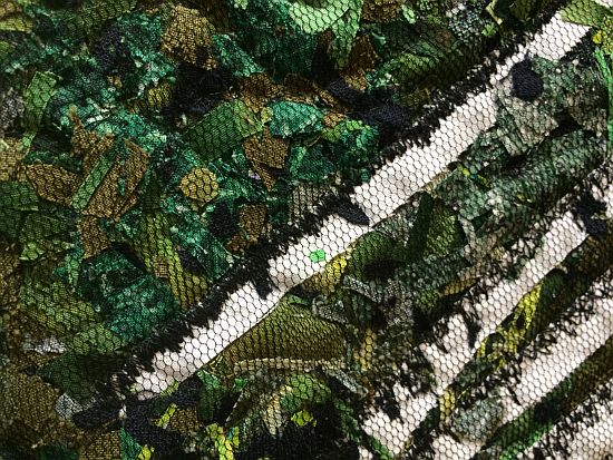 Es sind mehrere Lagen. Man "malt" erst den Hintergrund, legt dann Tüll darauf und näht diesen fest. Dann kommt der Vordergrund in der gleichen Technik - "malen", mit Tüll abdecken und nähen. Je nachdem welche Garnfarbe man nutzt, kann man dann damit auch malen. Durch das Vernähen setzt man das Design fest. Der transparente Faden, den man auch verwenden kann, ist nicht sichtbar.