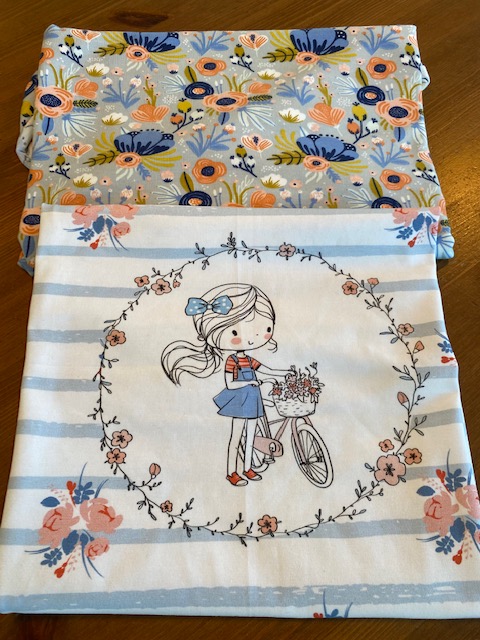 Der gemustere Blumenstoff in blau-aprikot soll ein Boho-Liebling werden. Das ist so ein bezaubernder Schnitt und der Stoff steht der Murmel super und passt perfekt zu Jeans - also lässig für die Schule. Hab ich gebraucht ergattert via Facebook.