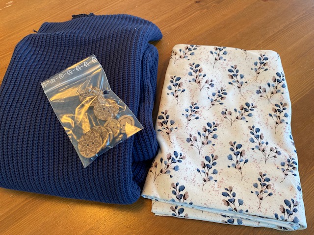 Und dann noch das Set mit dem blauen Strickstoff und dem zarten weißen Jersey mit den blauen Blüten. Das ist ja eher mein Beuteschema im Schrank, aber bei Murmels blauen Augen und zur Jeans - das wird traumhaft. Das wird auch ein Boho-Liebling und die Jacke dazu ein Cozy Cardigan von Schleiferlwerk mit den passenden Knöpfen.