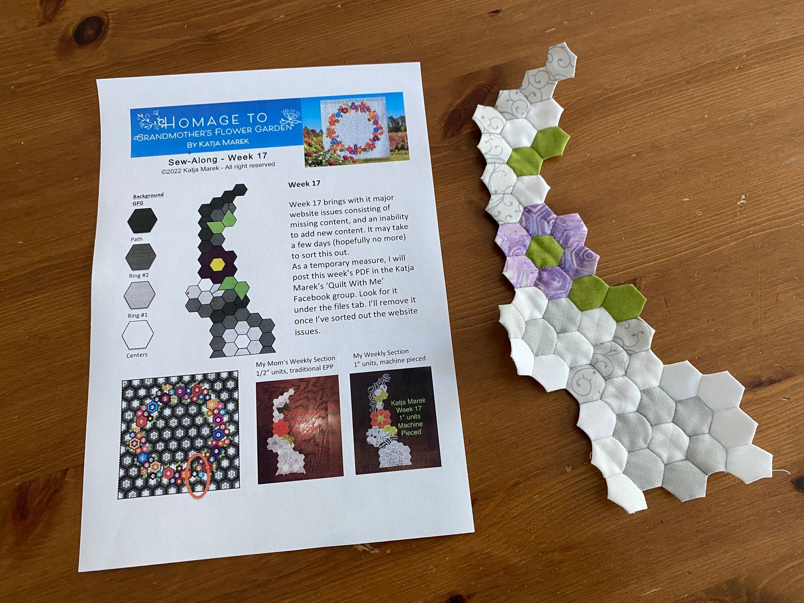 Wenn ich bei 20 bin, mache ich wieder ein Bild vom gesamten Projekt. Alle Wochen sind schon angenäht.