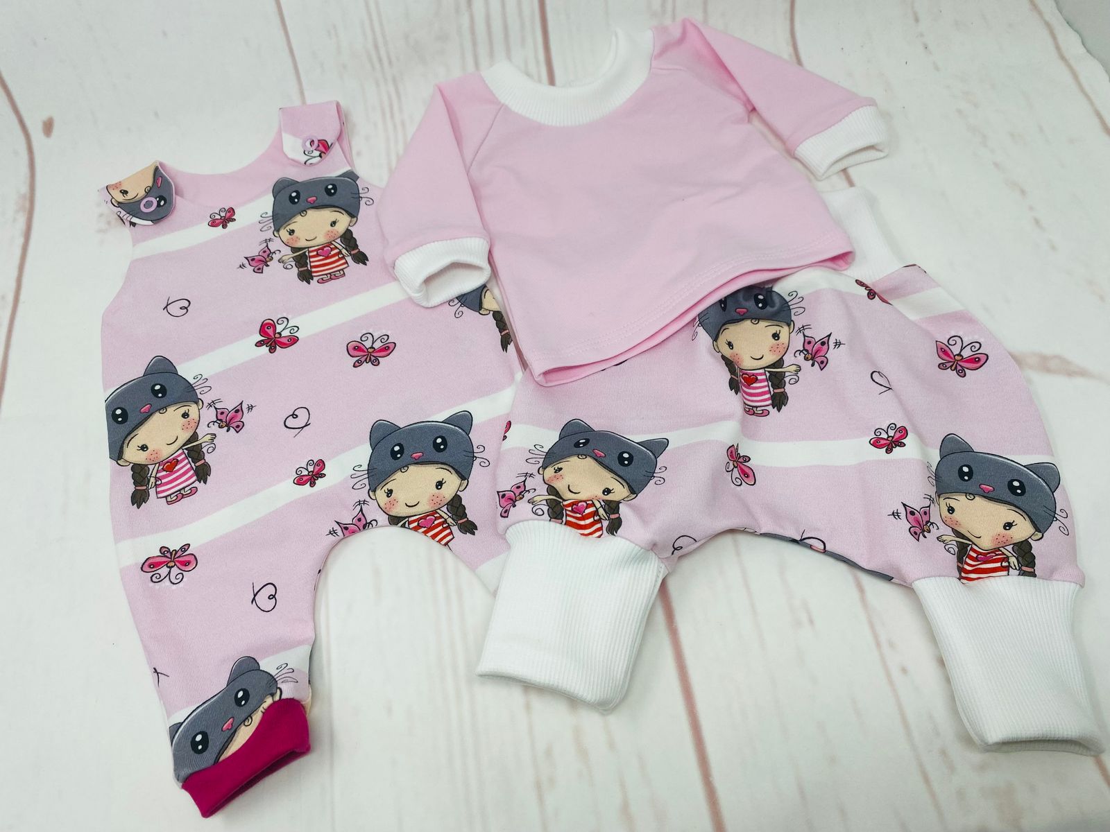 Verschiedene Sets, alle in Größe 44 und eine Häkeldecke aus Wolle aus dem Vorrat. Das Paket für Februar wieder mit einigen Sets, auch wieder mal Zwillinge, liegt auf der Overlock und geht noch diesen Monat raus.