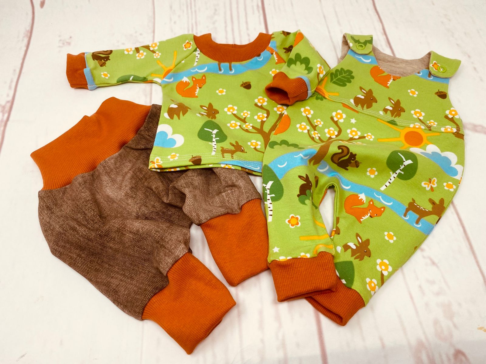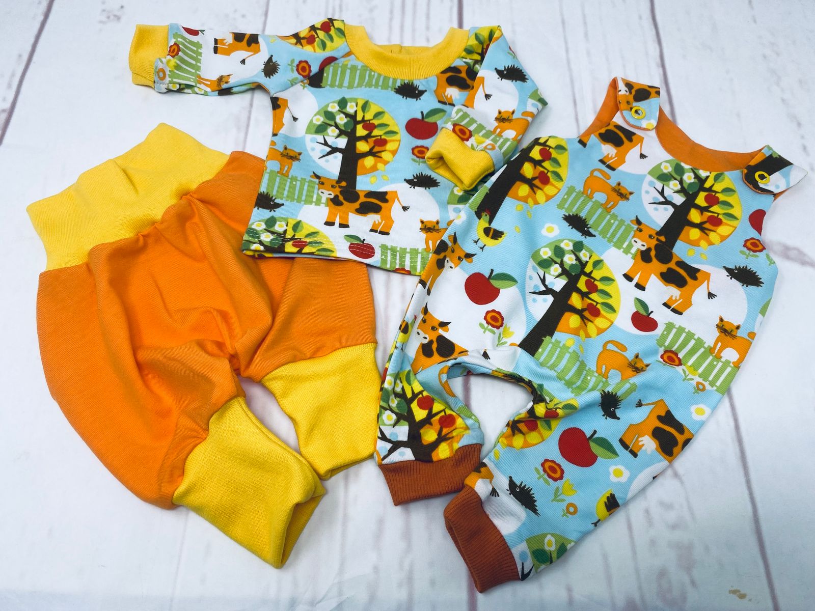 Es sind noch einmal Kombinationen geworden - einmal für ein Mädchen und einmal für ein gemischtes Zwillingspärchen. Ich habe auch noch ein paar andere Sets zugeschnitten, aber die werden erst nach meinem Urlaub gebraucht, also bleibt es für den August bei diesen süßen Teilen.