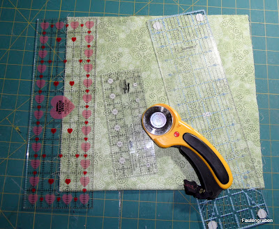 Ich benutze meist das 31,5x31,5 cm Lineal bzw. das 15 x 60 cm für längere Stücke. Kürzlich habe ich auch noch ein 15x15 cm Lineal dazugekauft für kleine Blöcke, aber das war noch nicht im Einsatz.