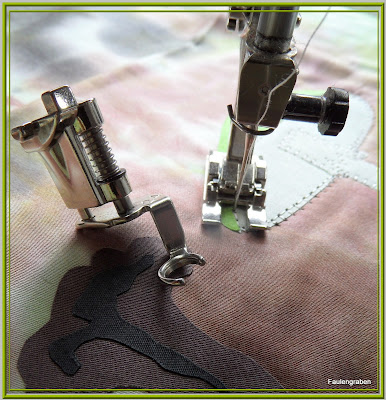Aber dann gehts doch nur mit einem Freihandquiltfuß, wenn ich es denn RICHTIG verstanden habe. Oder gibt es noch eine Alternative? Der Stopffuß? Ich probiere weiter ...