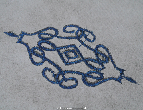 Damals hieß es seitens des Händlers, ich müsse mit Vlies nähen (für mich zu diesem Zeitpunkt was ganz ungewohntes) und neues Markengarn nehmen: für die Zierstiche sei Stickgarn nötig.
