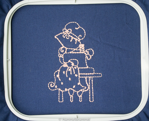 Und weil manche Leute so gerne Bilder sehen, habe ich für Euch meinen/ihren (also unseren) ersten Stickversuch von letzter Woche mal fotografiert. :)