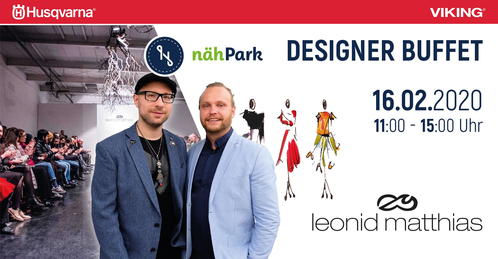 ZitatAlles anzeigenDesigner Buffet mit leonid matthias. Am Sonntag den 16.02.19 ist das bekannte Frankfurter Modelabel bei uns zu Besuch um mit Ihnen über Nähen und Husqvarna Viking Nähmaschinen zu fachsimpeln. Schauen sie den Designern über die Schulter und lassen sie sich von den kreativen Ideen inspirieren.
