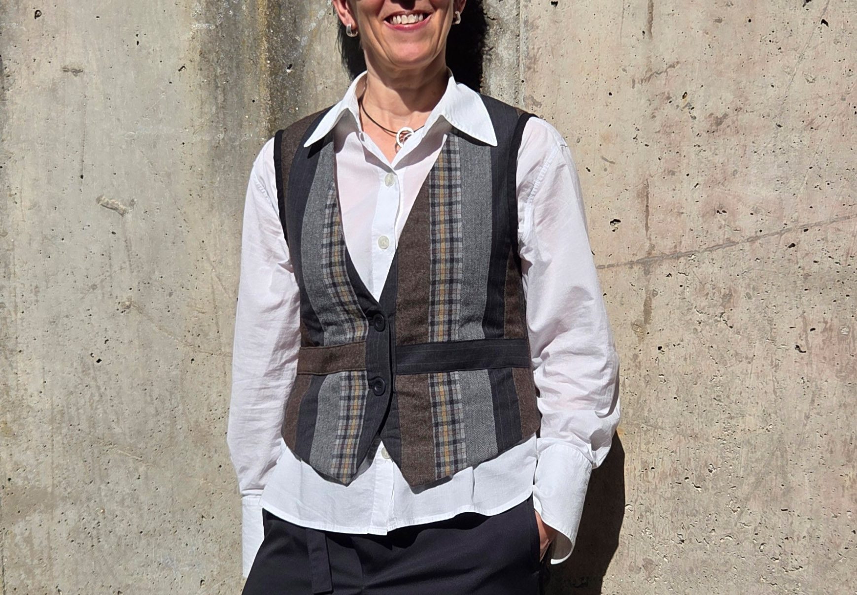 • Genau an den Artikel hab ich auch gedacht! Du nähst die Stoffe so zusammen, wie sie dir gefallen, dann schneidest du die Weste zu und fütterst sie. Fettich! ......und wir stehen mit offenem Mund da und staunen, weil du die Stoffe wieder so schön arrangiert hast......❤