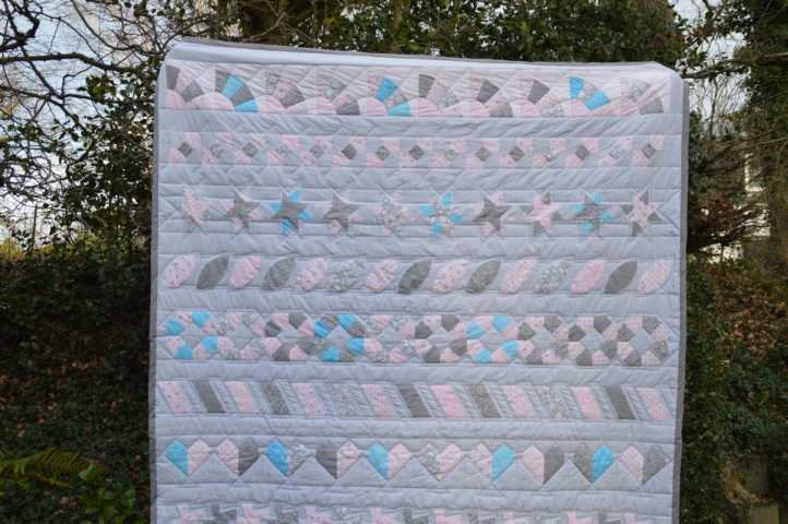 Das Teil ist echt riesig (also das Top, nicht die Nichte)! Wie ich das jemals quilten kann, ist mir noch ein Rätsel. Bild vom Top folgt. Und dann erzähle ich auch von den Nerven, die ich schon gelassen habe, weil die Reihen natürlich nicht gleich lang waren.