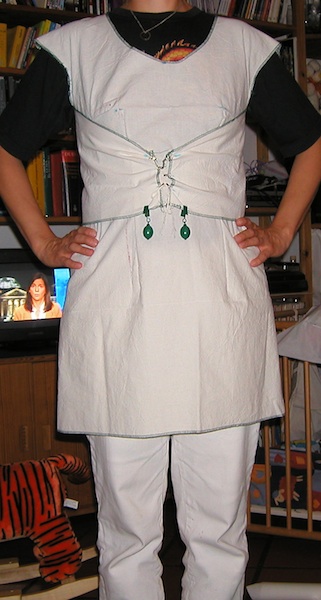 Probekleid von vorne(die Baummeldinger sind Tischdeckenhalter und ersetzen den Rock)