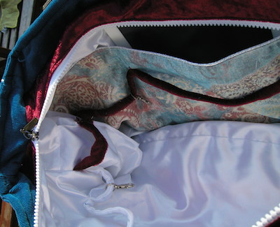 Im gegenüberliegenden Eck unterm Reißverschluß eine weitere, kleinere Tasche.