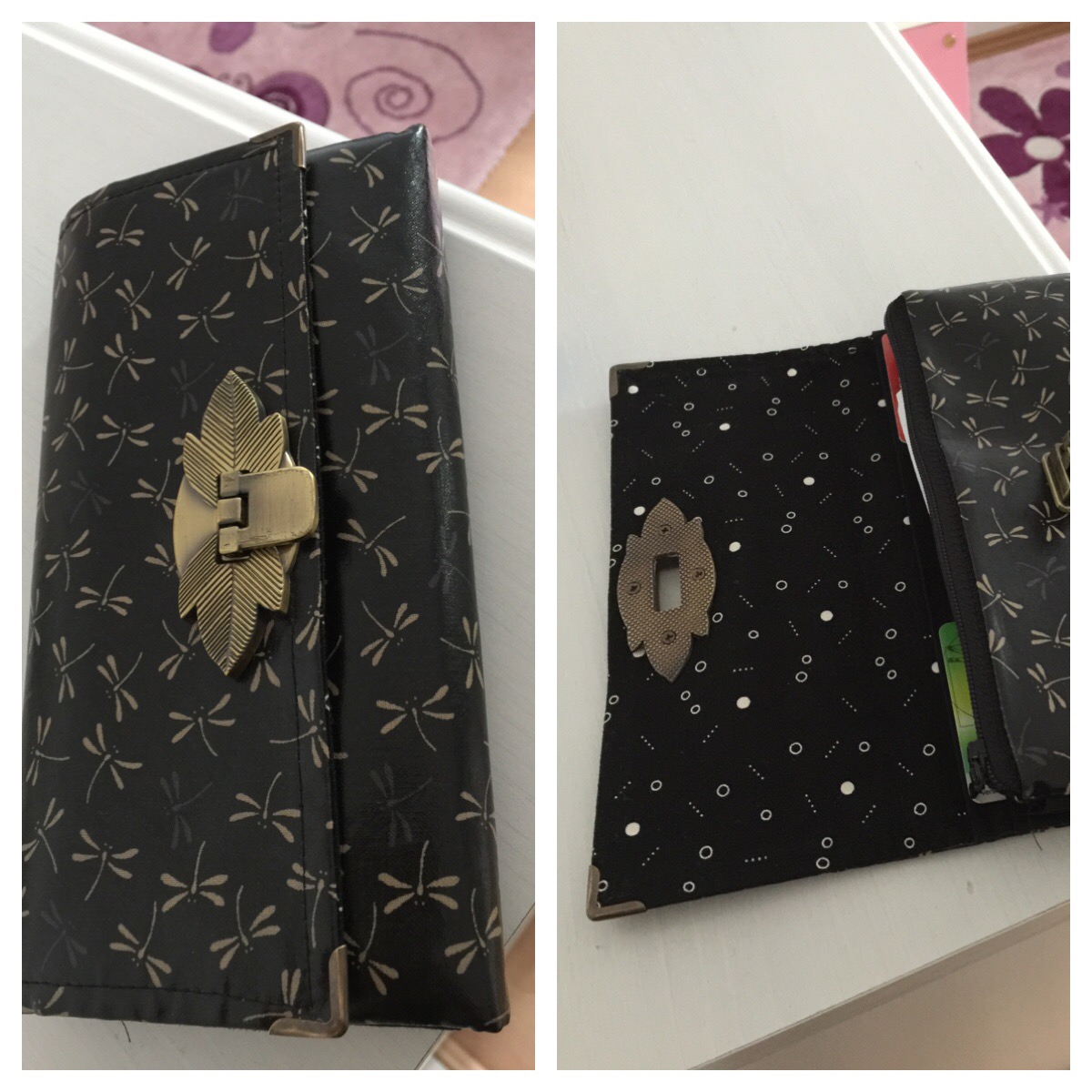 Eine Ruby von Hanselli aus Wachstuch von Kiseki. Der Innenstoff ist ein Fatquater von Windham (glaube ich... oder moda?) Ich mag den Verschluss, den habe ich bei Dawanda gefunden