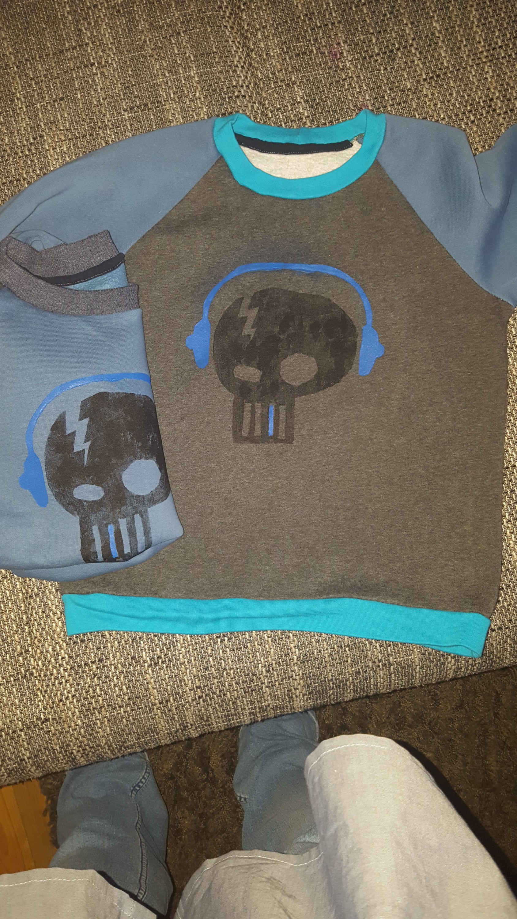 simpler sweater für jungs. Der druck musste jetzt cooler werden. Er ist ja kein kleinkind mehr.