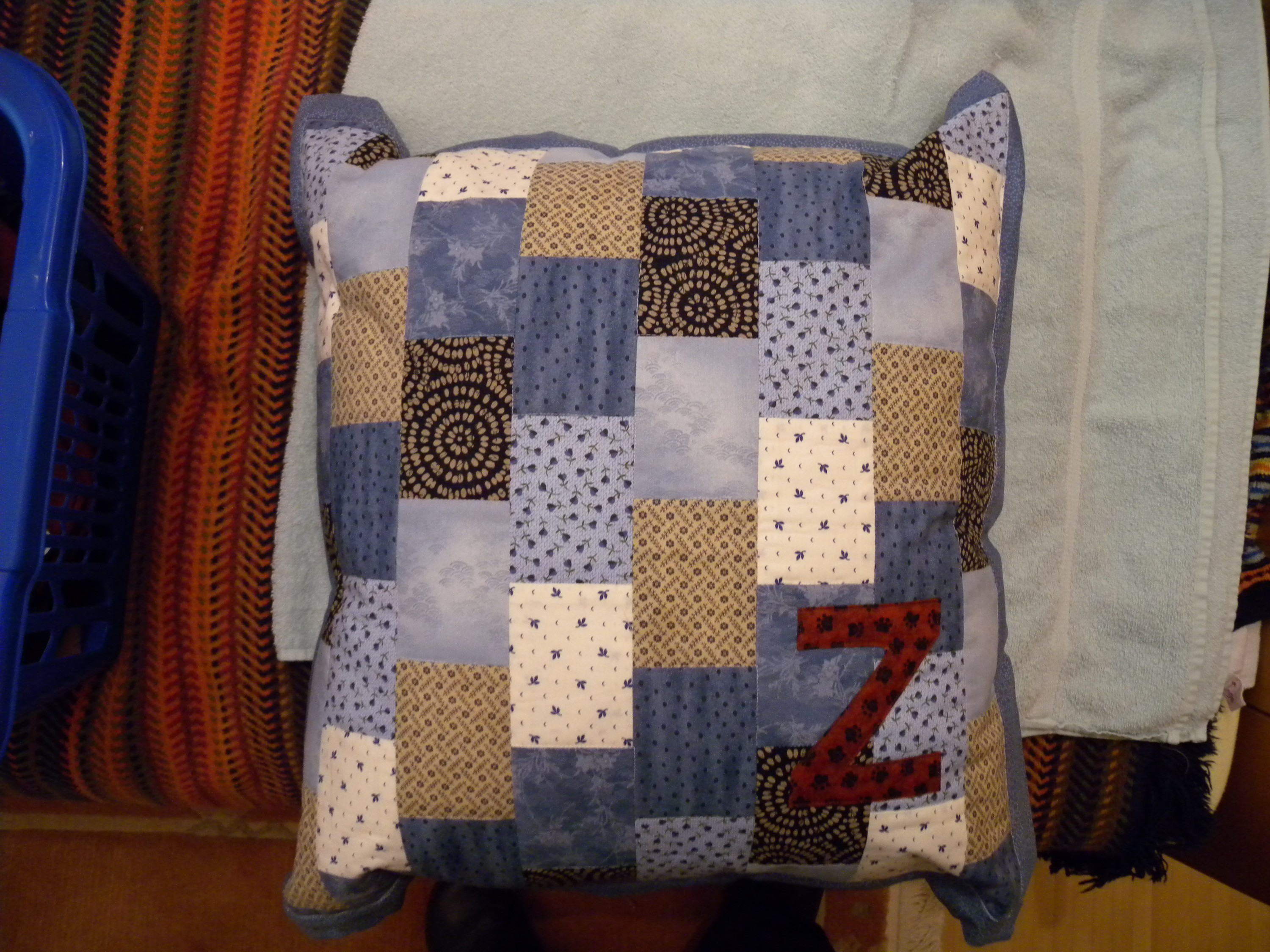 Kissen für den Sohn, die passende Decke dazu gibt es auch. Kann das Bild aber nicht finden.