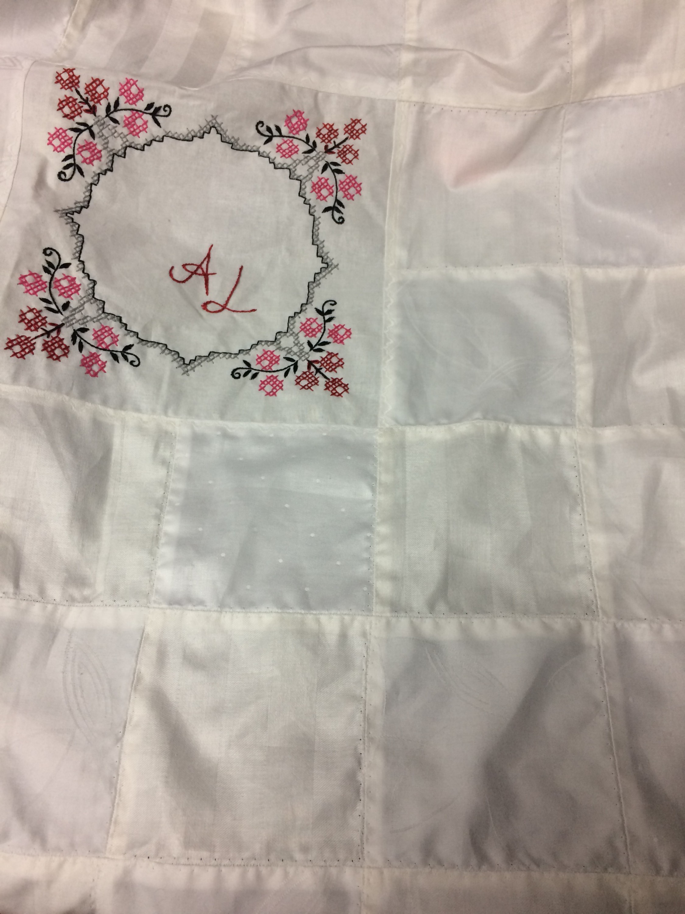 Eine Stickvorlage habe ich als Bestandteil genutzt, aus alter Weißwäsche einen neuen Kopfkissenbezug zu nähen.