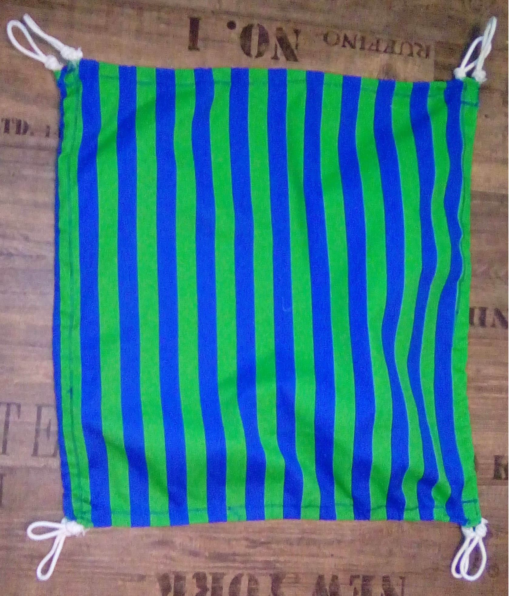 Eine 8mm Wäscheleine durchgezogen und Schlaufen an die Enden gemacht.