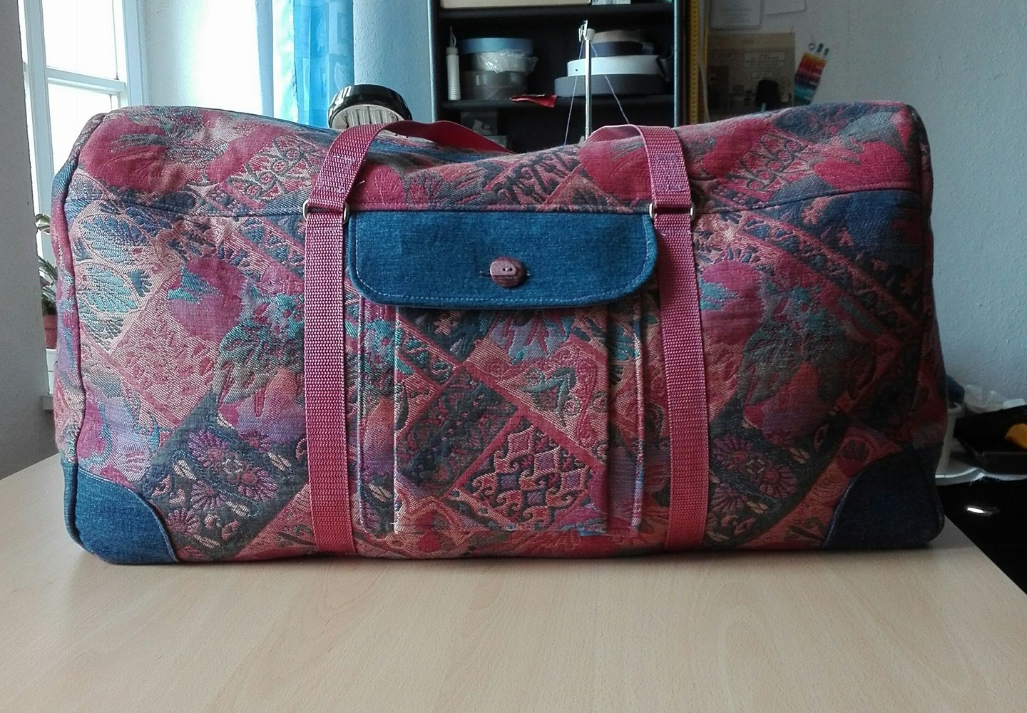 Wow, die sieht ja gut aus! Der Möbelstoff ist der Hammer, zusammen mit dem Jeans - Stoff unschlagbar!