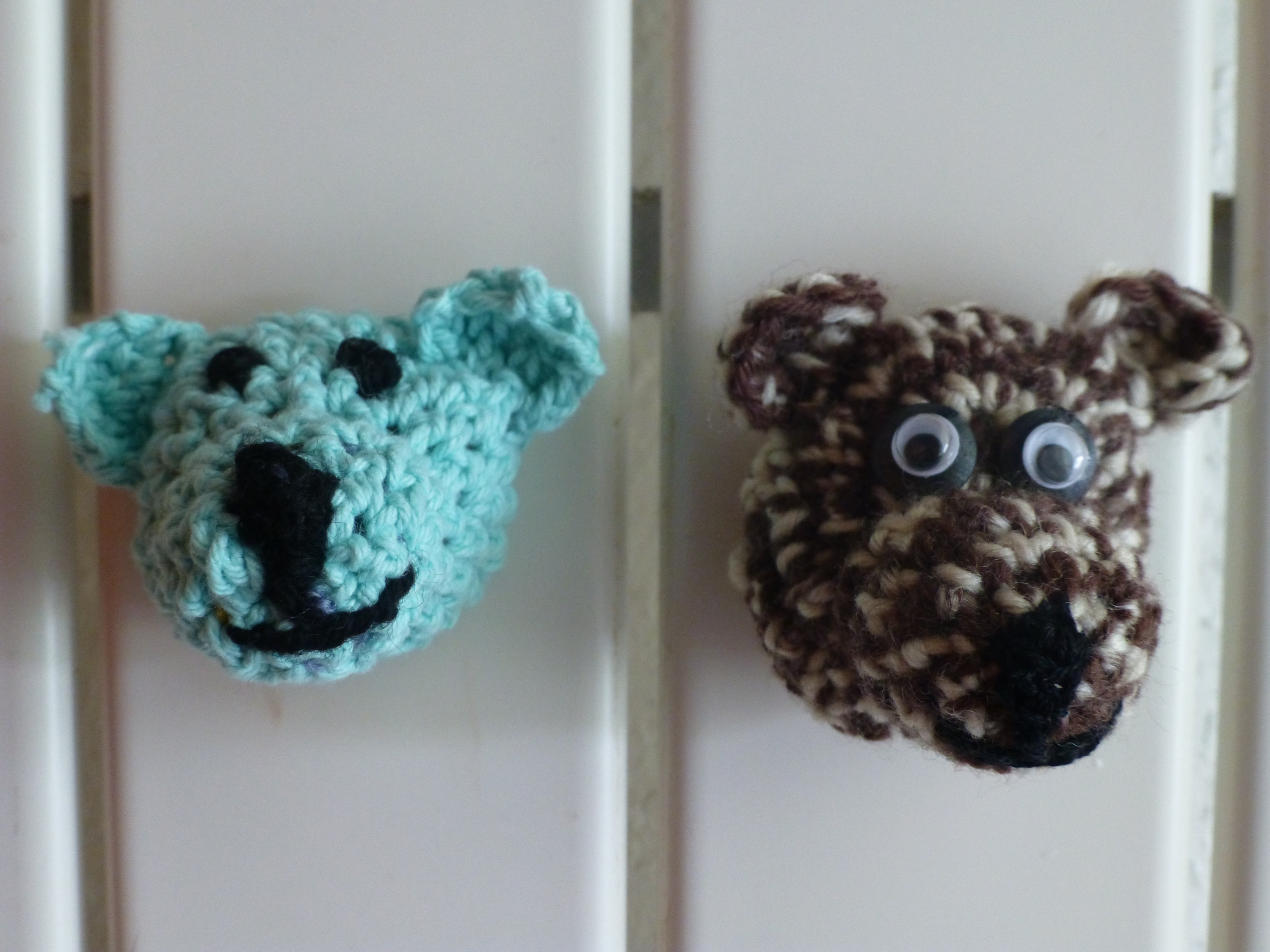 dann kam diese Anleitung und ich hatte gerade nichts besseres vor. Nur feine Wolle habe ich vergeblich in meinem Fundus gesucht. Also so. Entstanden sind ein Bärchen und ein Waschbär, die gute Laune bei uns verbreiten und denen ich einfach mit einer Heißklebepistole zu Magnetplättchen verholfen habe. Das ist so ein Wartezimmer-Projekt, das man mal eben so in sehr wenig Zeit fertig bekommt. Und sowas finde ich ja grundsätzlich ... BÄRIG. ![]()