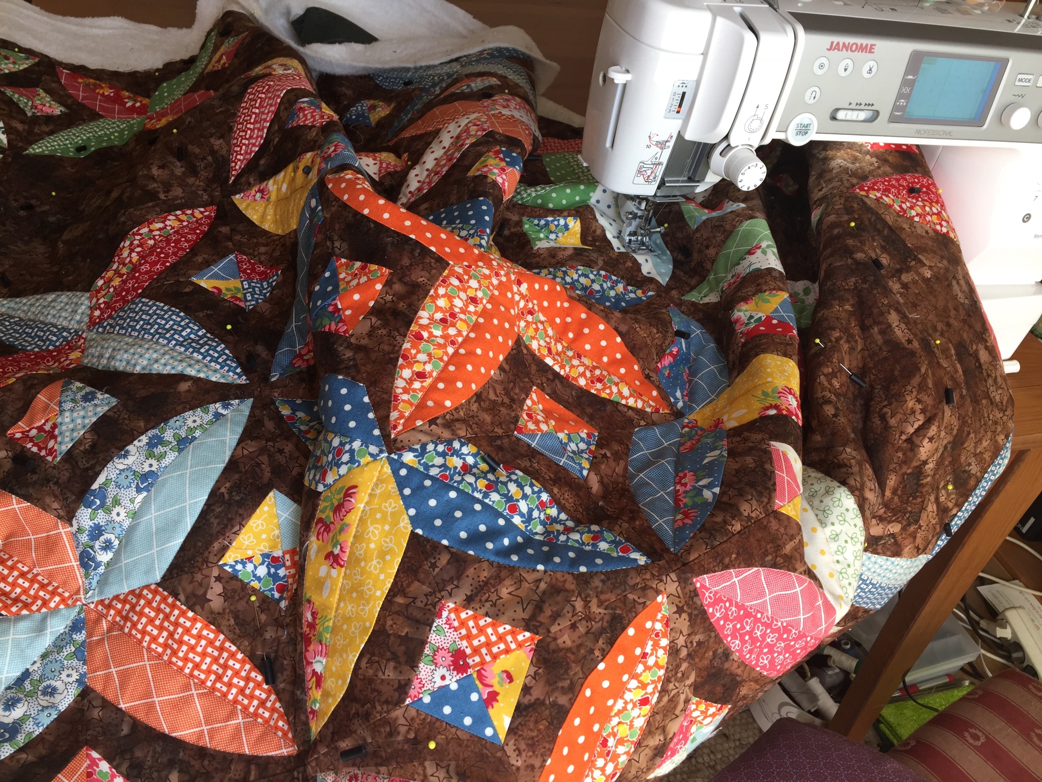 Mein so ziemlich erstes Testobjekt auf der Testmaschine Janome 6700p: Ich habe den Quilt für meinen Mann fertig gestellt
