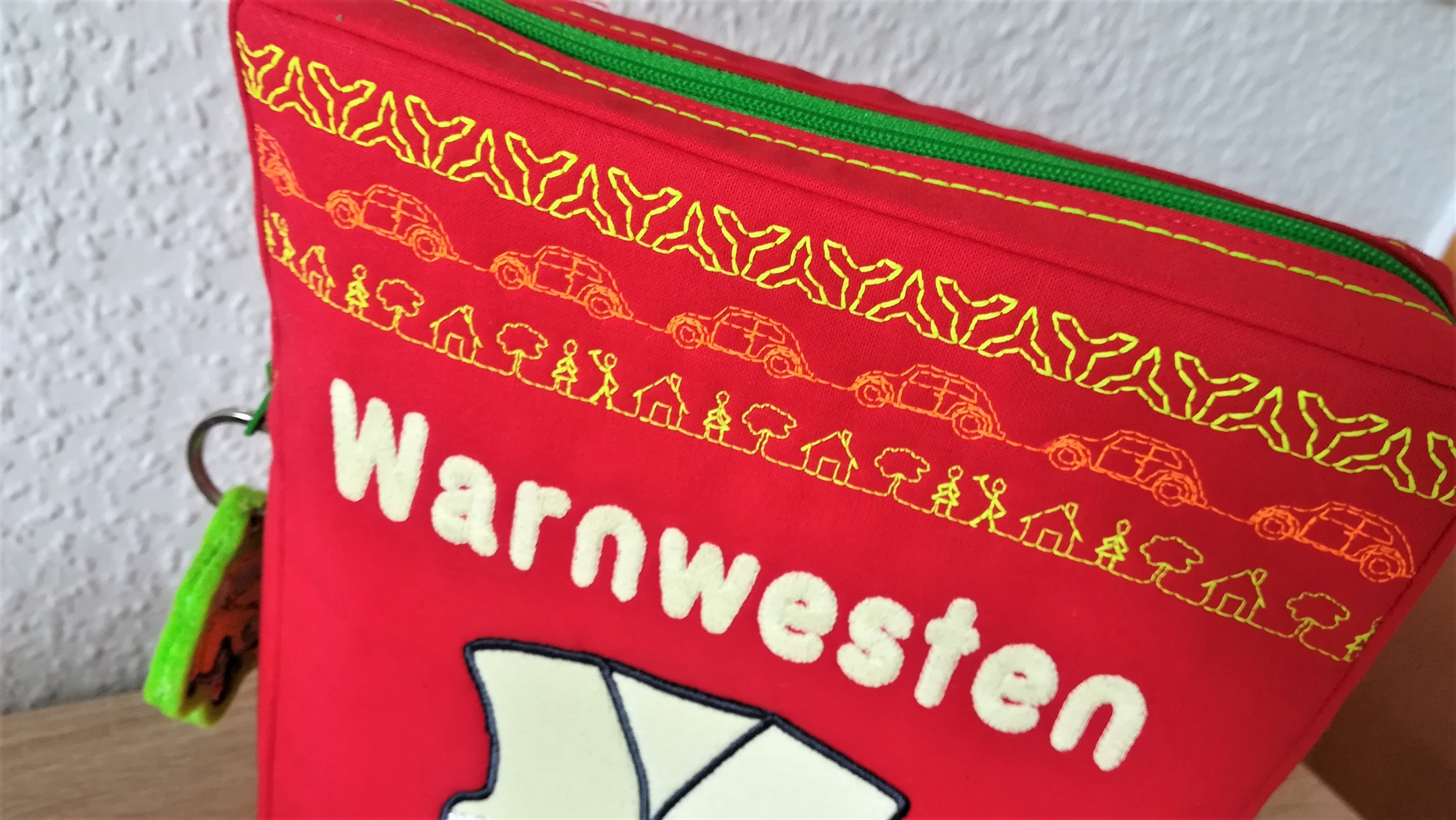 Nun ist Ersatz für meine in die Jahre gekommene Tasche für das Auto zum schönen Aufbewahren der Warnwesten auf der Rückbank.