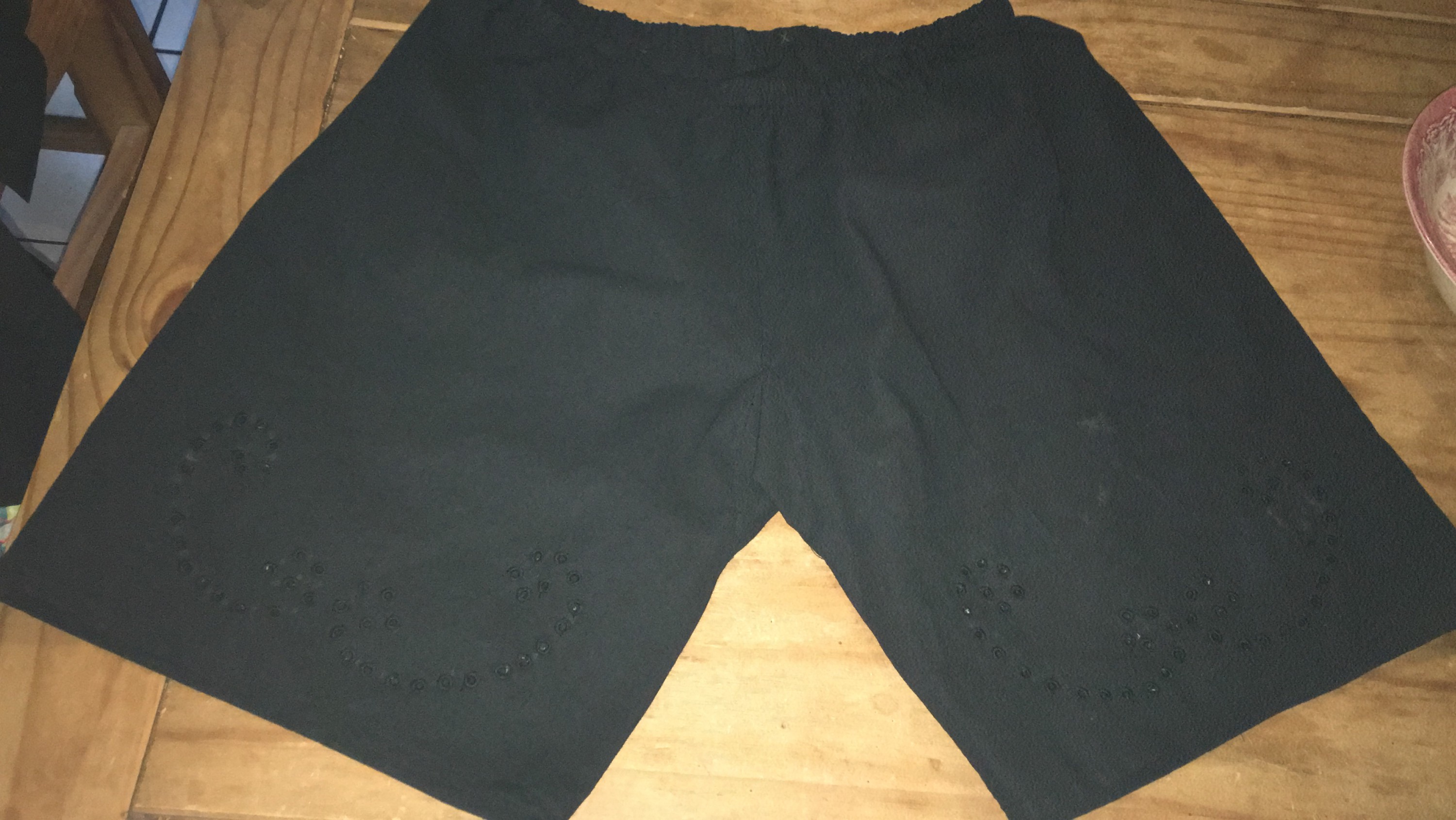Zusätzlich habe ich heute mit meiner Elna Lotus eine Lochstickerei auf beiden Hosenbeinen angebracht.
