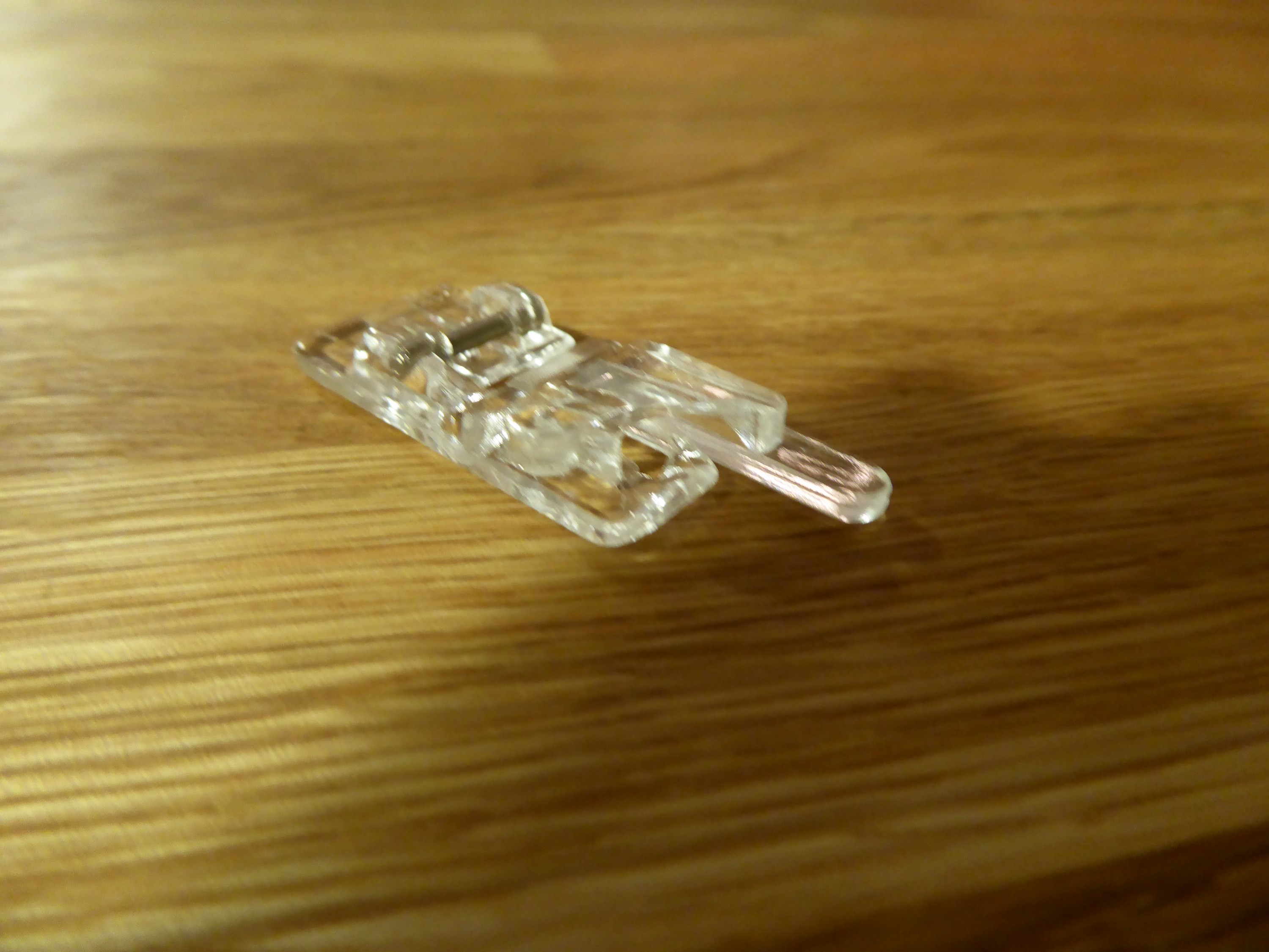 Kannst Du den mal von oben in der Draufsicht zeigen. Das ist ein Snap on Fuß und er gehört vermutlich zur brother. Hat er eine Führung, so dass man ein Band einführen könnte?