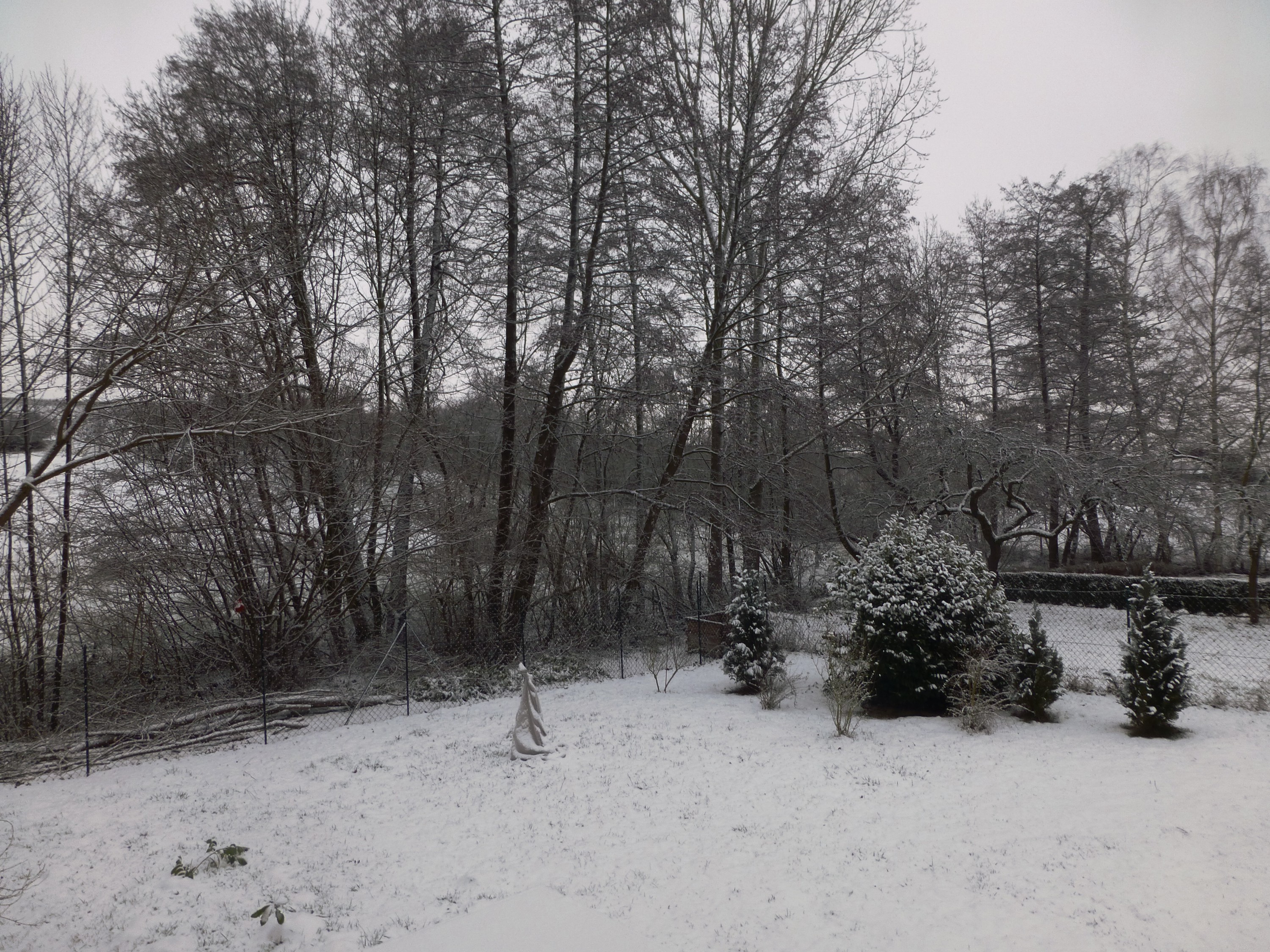 Böses Erwachen heute morgen: Ich mußte mein Auto freischaufeln, damit mein Sohn überhaupt zur Schule konnte und Schneeschippen mußte ich dann auch noch. War ja klar, ist ja auch sonst keiner Zuhause.