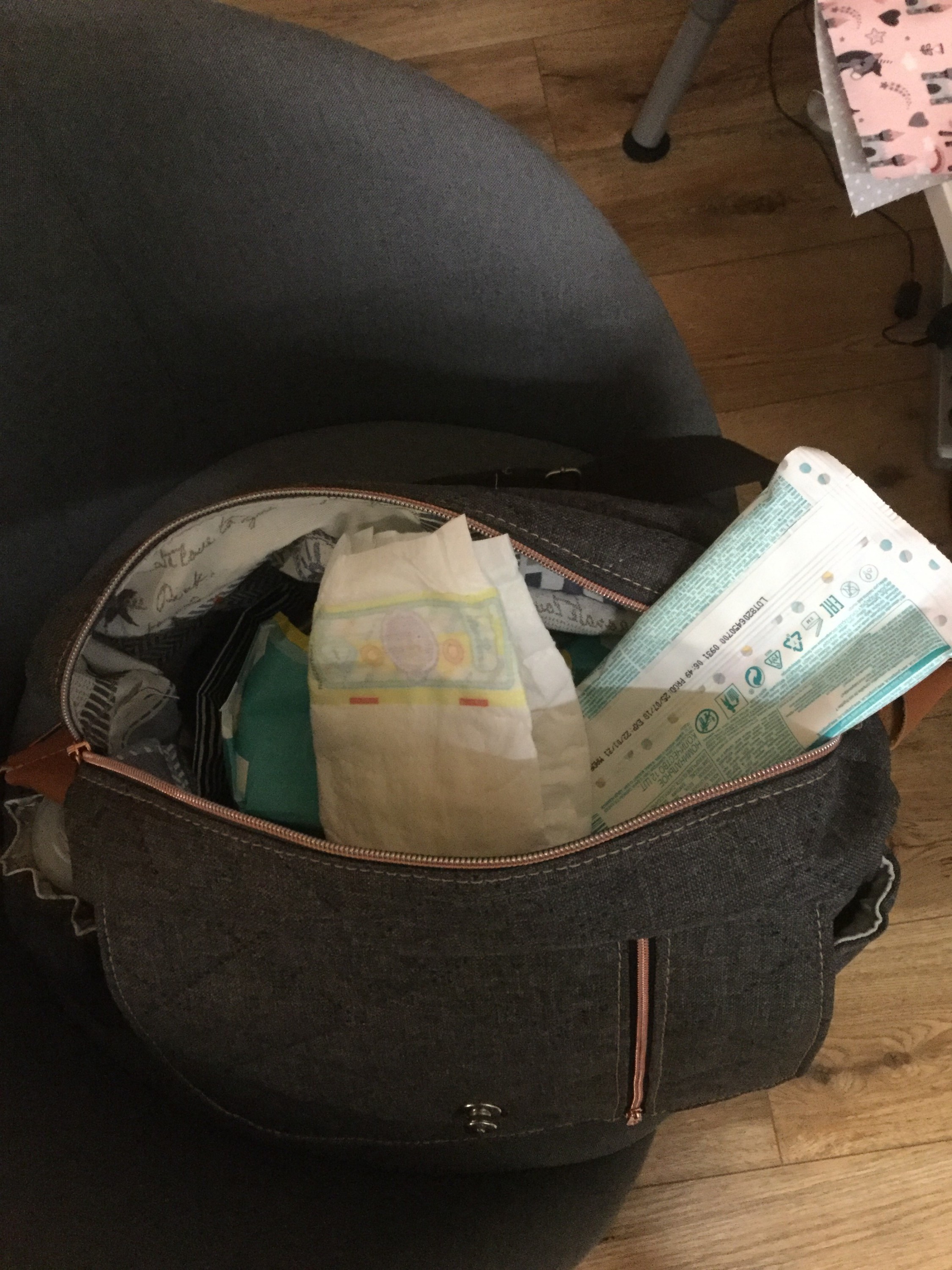 Die Überlegung, wie soll die Wickeltasche aussehen, war eine Herausforderung. Der Schnitt ist im Baukastensystem aufgebaut und bevor man näht muss man schon wissen, was man möchte. Im Inneren, sieht man so nicht, habe ich noch Einteilungen die man sich hinknöpfen kann wie es passt. Da gibt es bei Farbenmix diese tollen Druckknopfbänder. Jetzt muss nur noch das Baby kommen.