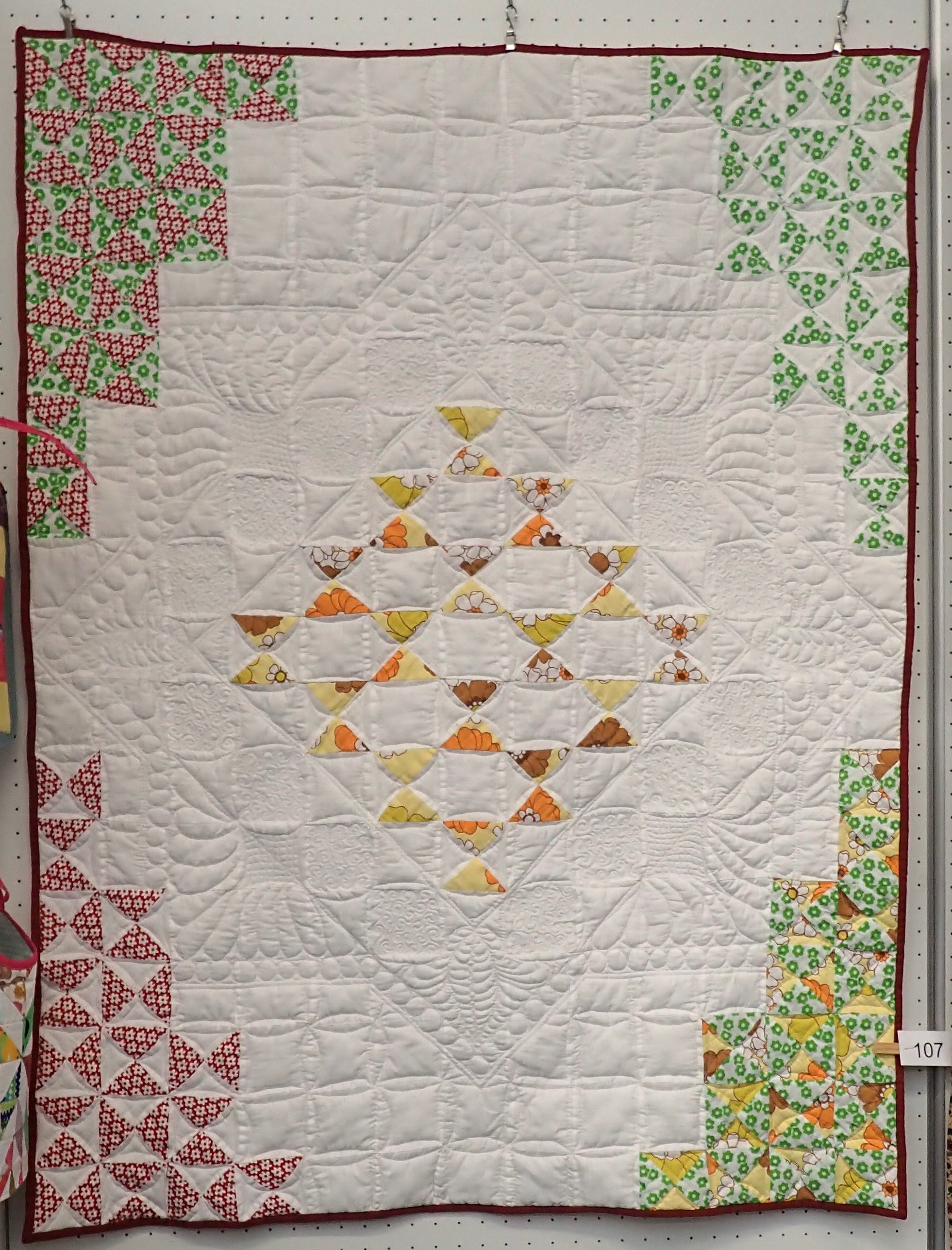 Ich hatte ihn neulich auf der Patchworkmesse in Erding das erste Mal gezeigt. Die Rückseite ist leider nicht perfekt, hier hat es einige Falten gegeben (die man auf den Fotos aber nicht wirklich sieht
