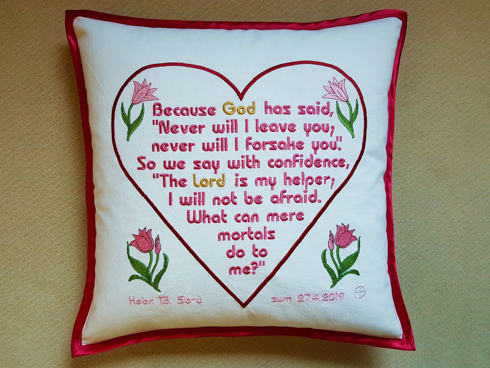 Auf englisch ließ sich der Konfirmationsspruch besser in Herzform bringen als im Deutschen.