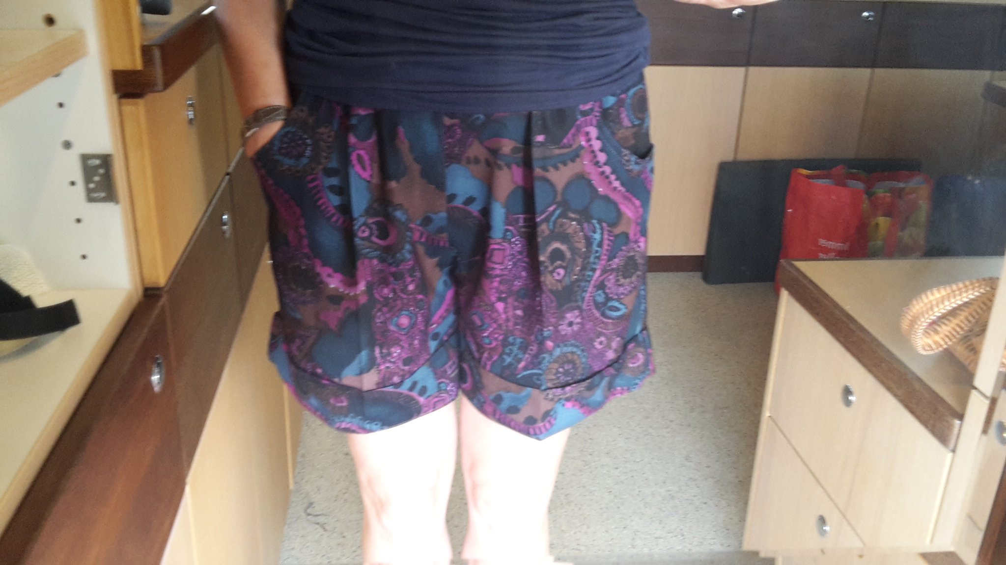 Das war letzten Sommer mein -im Urlaub genähtes- Probemodell, aus einem uralten Stoffrest und einem Simplicity-Schnitt. Relativ einfach gehalten, was man auf dem Foto nicht sieht - oben ist "nur" ein ganz einfacher Gummibund drin.