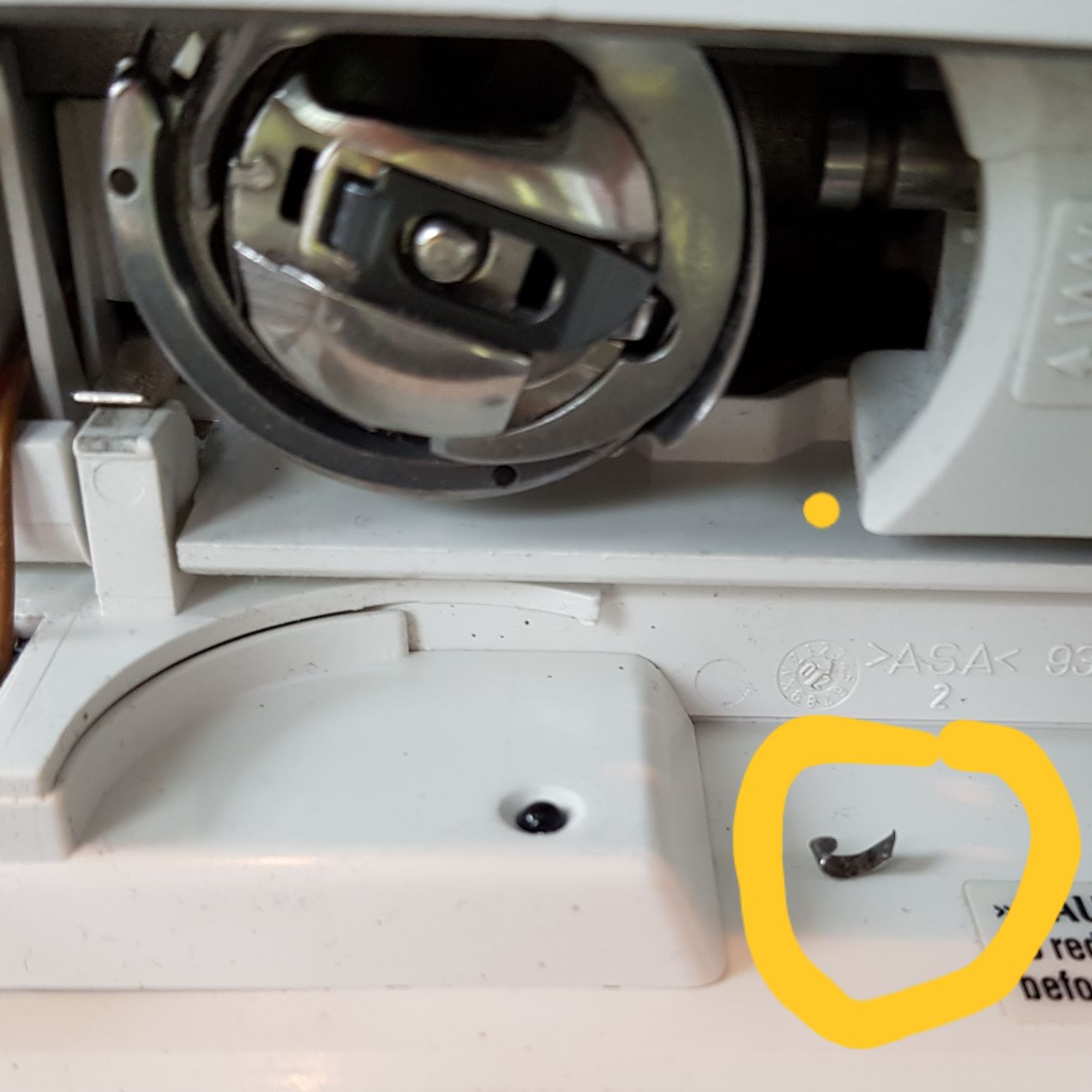 Guck mal bei der Fadenführung neben dem Fadengeber nach, ob das dort fehlt....