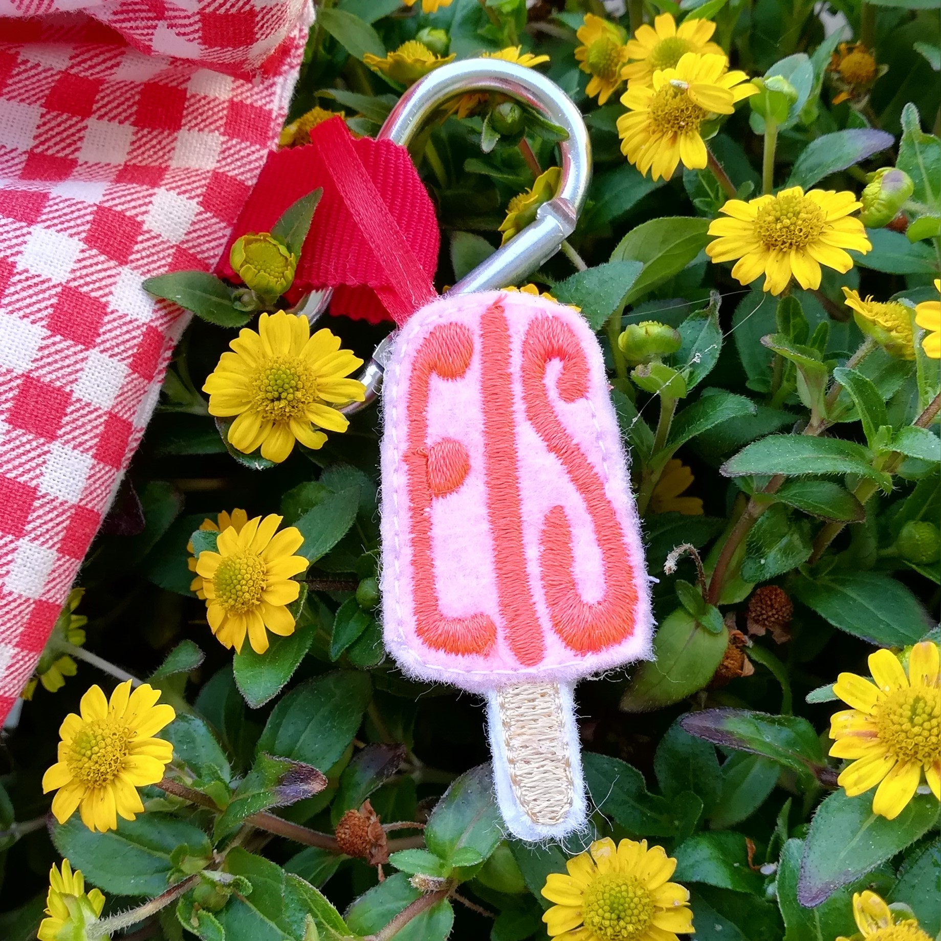 Mit dem kleinen gestickten Anhänger habe ich hier mein Kulturbeutelchen verziert. Solche Kleinigkeiten machen erst das gewisse Etwas, oder?