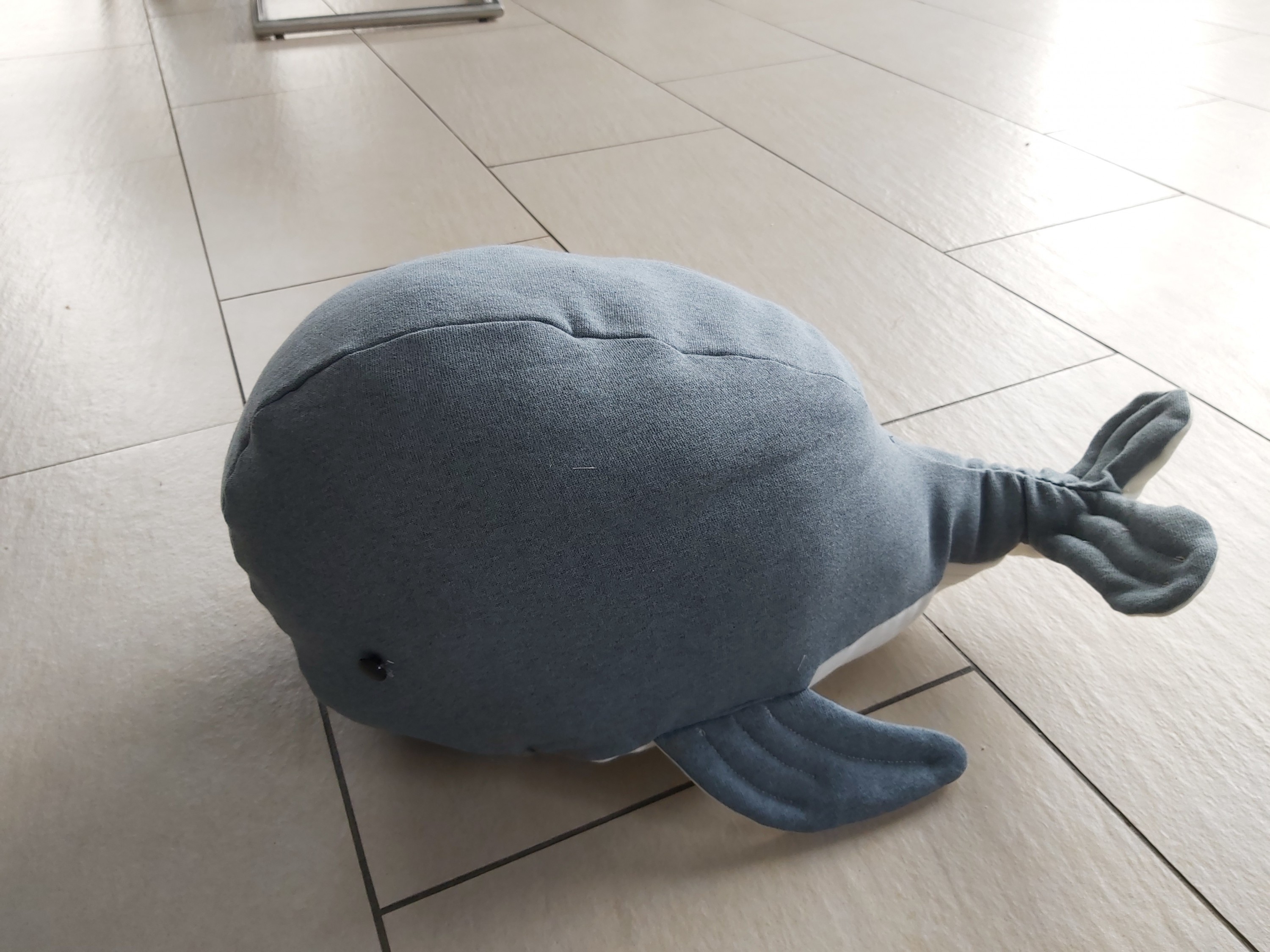 Der Sohn meiner angeheirateten Cousine wird vier und liebt Wale. Daher ein Kuschelkissen als Geschenk (die Alternative wäre ein Dino gewesen, Himmel hilf...). Stoffe und Schnitt von Stoff und Stil.