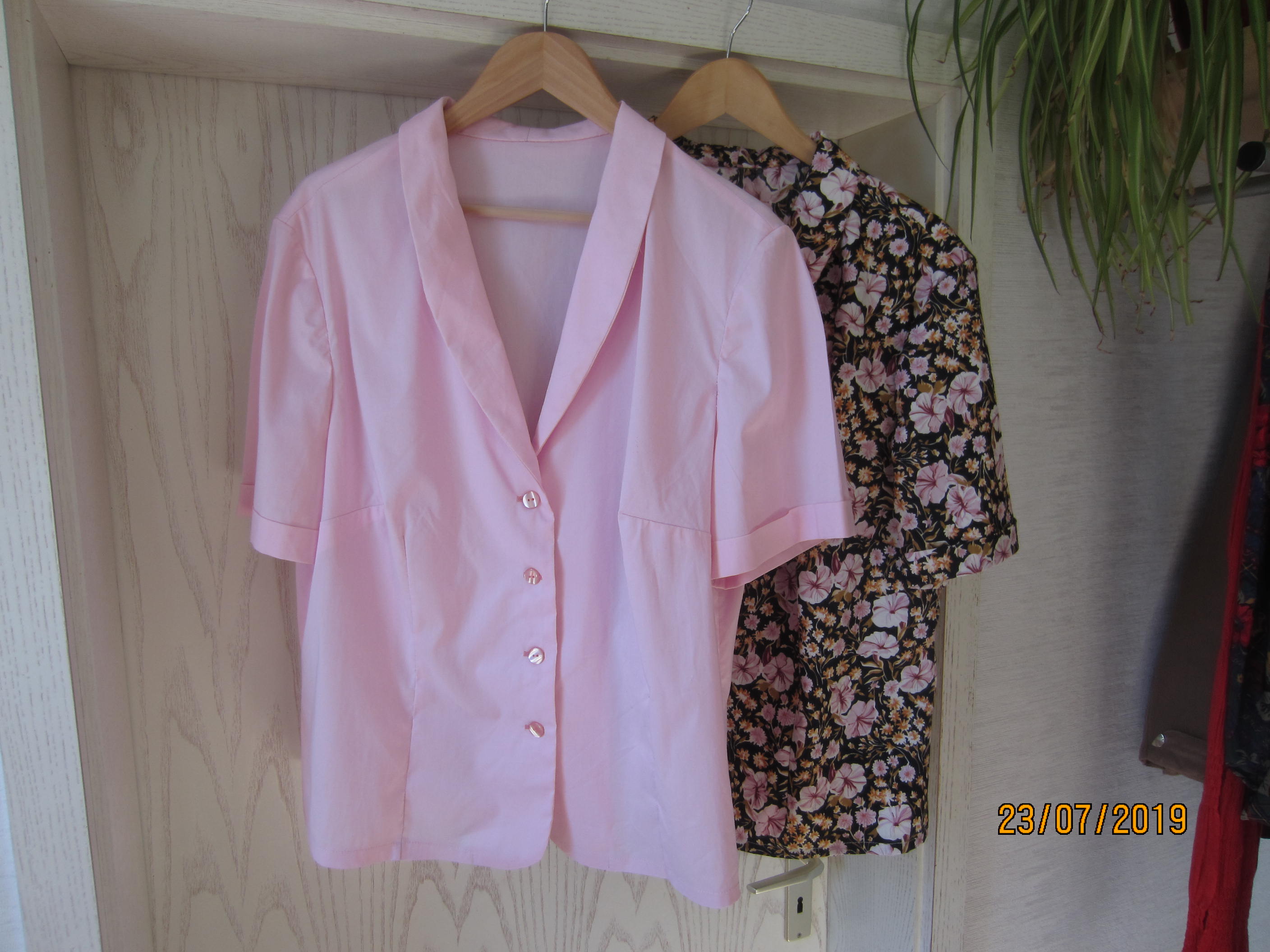 Die erste war schon im Juni fertig, diese zwei ergänze ich noch. In Rosa ein feines Mischgewebe aus Viskose, PE und Elastan, die geblümte ist aus bedrucktem BW-Batist
