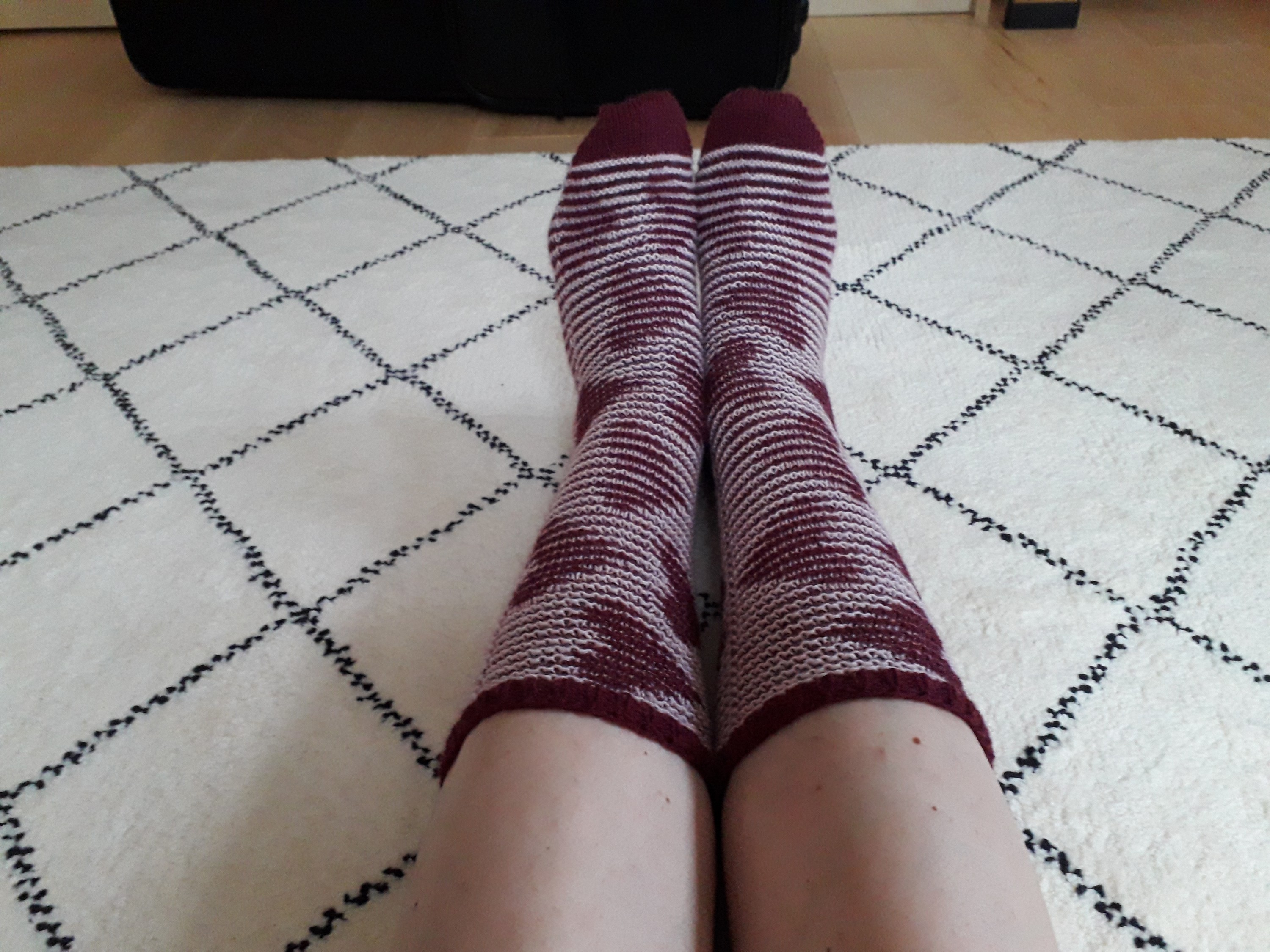 Die Socken sind mit der kleinen Nadelstärke und dem etwas dickerem Garn schön dicht und weich geworden. Für mich die optimale Nadelstärke für Socken aus diesem Garn.