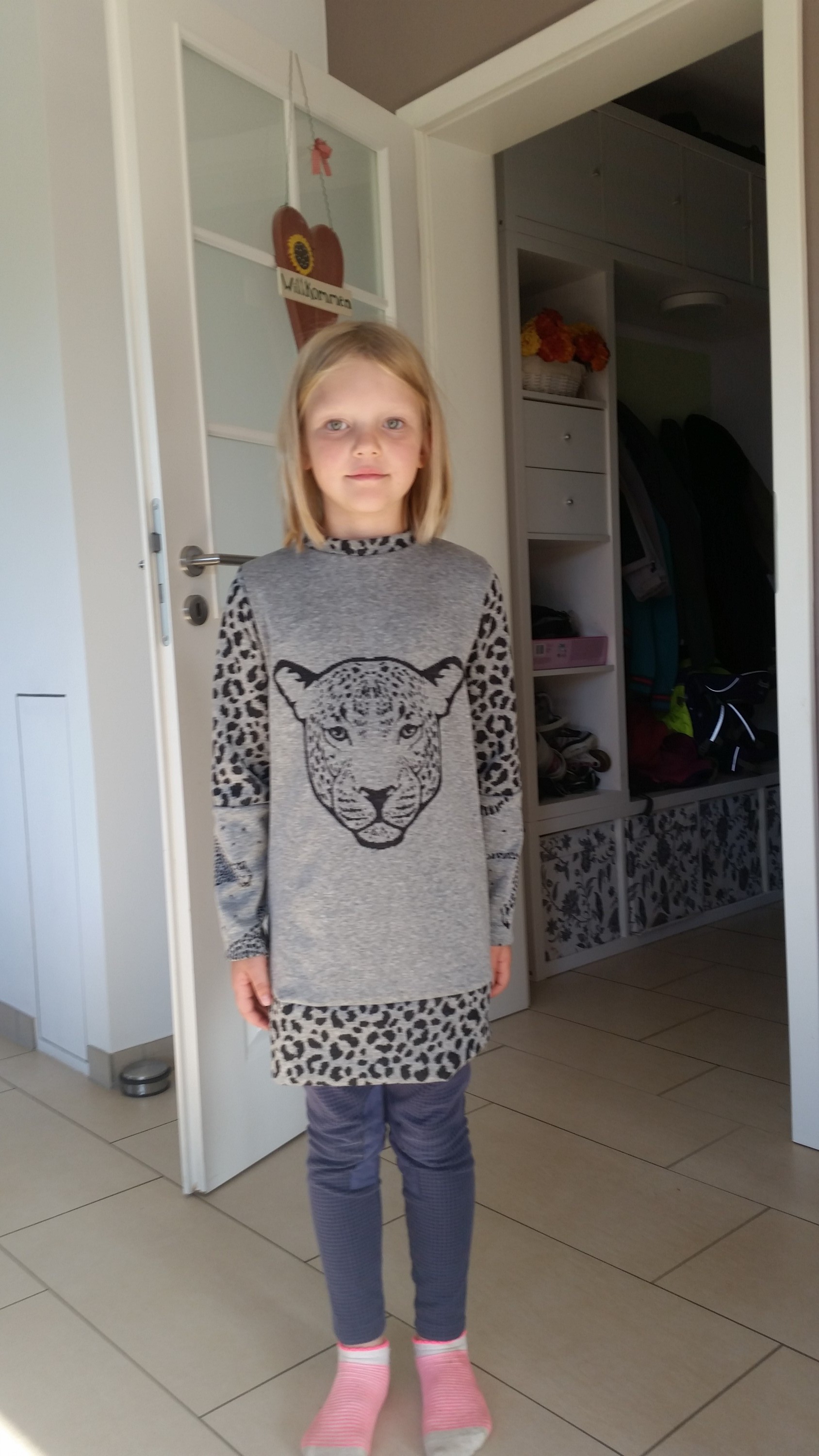Leopardin mit rosa Söckchen.