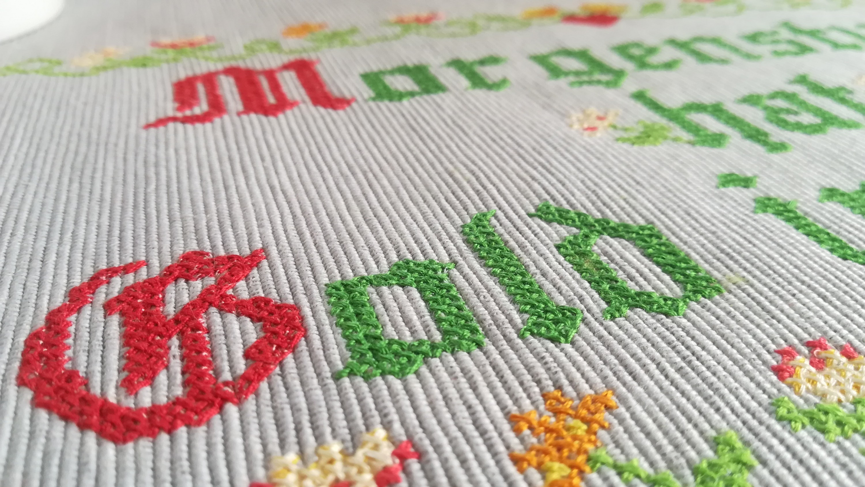 Hierfür habe ich das Geschirrtuch sogar ohne Stickvlies bestickt. Wie das geht, zeige ich auf meiner Facebookseite: